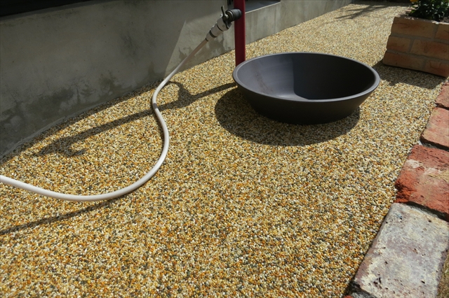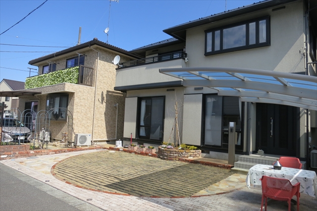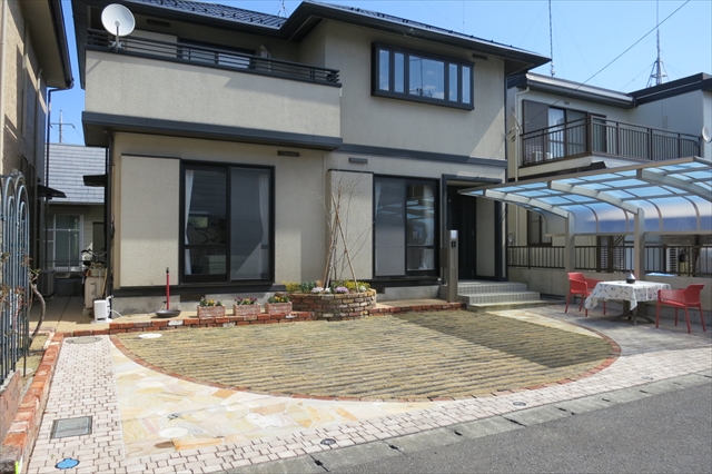 ホームスティなどのお客様用のゲストハウスとして利用されているお家です。来客時の駐車スペースを広くするとともに、空車時の見栄えも考慮して欲しいとのご要望でした。お客様がいらっしゃらない時には、本を読んだりお茶を楽しんだりできるお庭的な要素を含んだデザインをご希望されていました。
