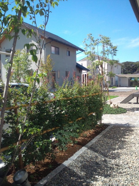 目的カテゴリ お花を楽しみたいペットと過ごすBBQをやりたい癒やしの空間が欲しい近隣の目線が気になる草むしりから解放されたい デザインスタイル ナチュラルモダンプロバンスイングリッシュその他 施工場所 建物周り庭駐車場外周り門周りアプローチ 癒やしの空間が欲しいその他庭外周り門周り 新築外構 | 熊谷市 M様 -1203- 2020.05.28 施工前の様子 施工スタッフより 外構工事と和風モダンのお庭を作りました。築山がアクセントになり、全体的な和風の雰囲気を醸し出しています。下草はタマリュウを植えています。 お客様がお持ちであった水鉢を利用し水が流れる仕組みを作りました。水の音が涼しさと心地よさを作りだしています。 使用アイテム 門柱・門袖・ポスト・表札庭周りアプローチ目隠し門周り天然石塀・フェンスガーデン資材ガーデンライト 施工事例一覧へ
