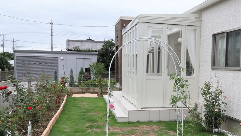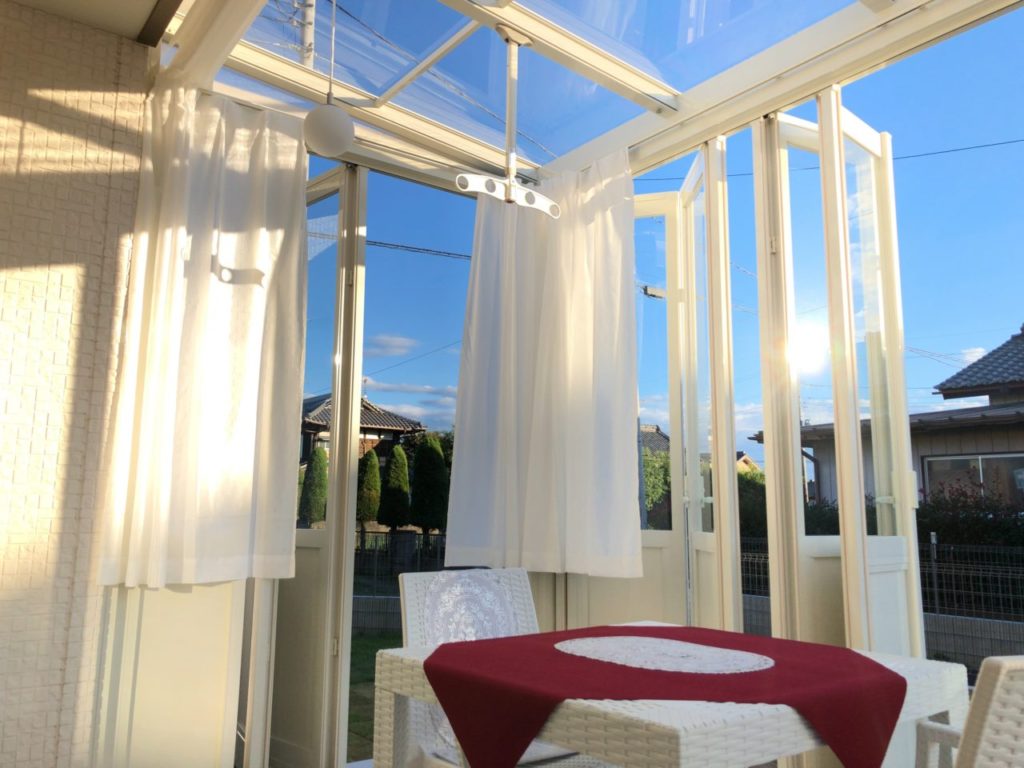 ご夫婦の時間をとても大切にされているS様。お部屋とは少し違った空間のガーデンルームで、休日はまったりとティータイム。夜はディナーで至福のひとときを楽しまれていらっしゃいます。もちろん昼間は洗濯物を干す場所としても活躍しているようです。