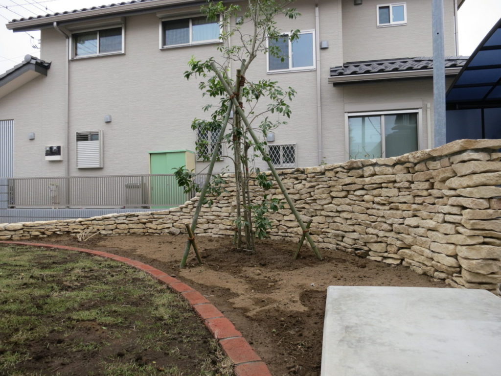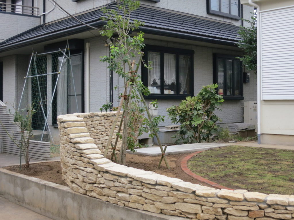 雑然となりつつあるお庭が、コッツウォルドストーンのポイントウォールでイングリッシュガーデンに様変わり。季節のお花が大好きな奥様のアレンジで色とりどりのお花が咲く明るい欧風のお庭に。芝面も広くなり、ご主人様のゴルフ練習も楽しめるスペースとなりました。四季を感じるお庭で、心地よい毎日をお過ごしいただけましたら幸いです。