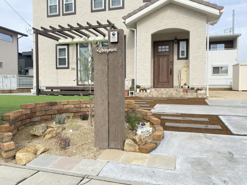 アイテムカテゴリ 庭周り ガーデンルーム ウッドデッキ タイル・ストーンデッキ テラス屋根 パーゴラ 花壇 立水栓 ガーデンライト門周り 門柱・門袖・ポスト・表札 アプローチ駐車場 駐車スペース塀・フェンス 塀・フェンス 目隠しその他アイテム 物置 ピザ窯・ガーデンシンク ポイントウォール ペットガーデン資材 レンガ コッツウォルドストーン 天然石 ガチン固 枕木 天然芝・人工芝 門周り レンガサークル花壇の門まわり 2025.03.29 この施工事例を見に行く 【 門周り】の他の施工例を見る タイル貼りの門袖 枕木風擬木のアプローチ お子様の飛び出し防止ゲートとして スラ... おしゃれなバッグ型ポストの付いた塗り... 天然石とレンガラインのホワイト系のア... 取扱工事・アイテム一覧へ