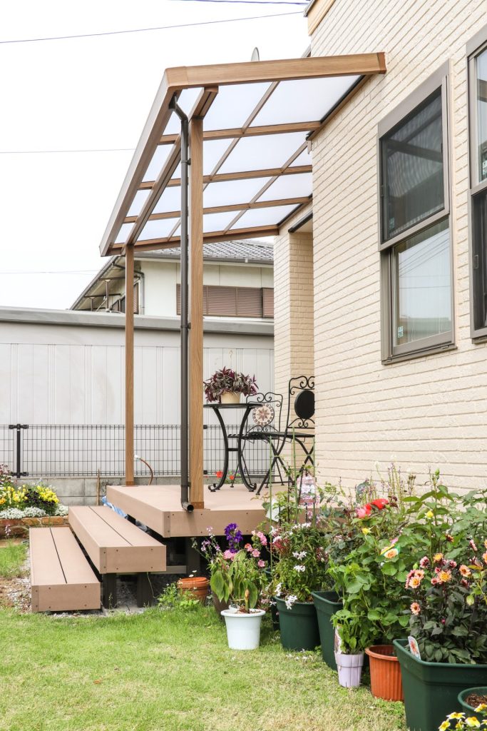 アイテムカテゴリ 庭周り ガーデンルーム ウッドデッキ タイル・ストーンデッキ テラス屋根 パーゴラ 花壇 立水栓 ガーデンライト門周り 門柱・門袖・ポスト・表札 アプローチ駐車場 駐車スペース塀・フェンス 塀・フェンス 目隠しその他アイテム 物置 ピザ窯・ガーデンシンク ポイントウォール ペットガーデン資材 レンガ コッツウォルドストーン 天然石 ガチン固 枕木 天然芝・人工芝 テラス屋根 花壇を望む、くつろぎのテラス屋根空間 2025.05.22 【 テラス屋根】の他の施工例を見る アウトドアリビング タイルデッキ × カ... 強い日差しを和らげるテラス屋根 雨でも安心なテラス屋根!タイルデッキ... Gルーフのテラスで母屋と離れの間のスペ... テラス屋根のあるタイルデッキ 取扱工事・アイテム一覧へ