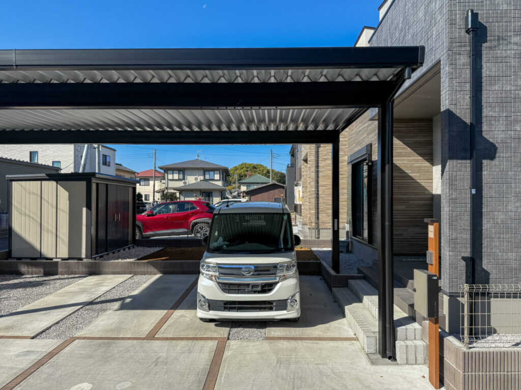 アイテムカテゴリ 庭周り ガーデンルーム ウッドデッキ タイル・ストーンデッキ テラス屋根 パーゴラ 花壇 立水栓 ガーデンライト門周り 門柱・門袖・ポスト・表札 アプローチ駐車場 駐車スペース塀・フェンス 塀・フェンス 目隠しその他アイテム 物置 ピザ窯・ガーデンシンク ポイントウォール ペットガーデン資材 レンガ コッツウォルドストーン 天然石 ガチン固 枕木 天然芝・人工芝 駐車スペース駐車場 直線的で骨太なデザイン| 風・雪に強い3台用カーポート 2025.12.18 【 駐車スペース】の他の施工例を見る スタイリッシュなカーポートFⅡ クールな印象のカーポートFⅡ スタンプコンクリートで駐車スペースに... スタイリッシュなカーポートSC スタイリッシュなサイクルポートSC 取扱工事・アイテム一覧へ