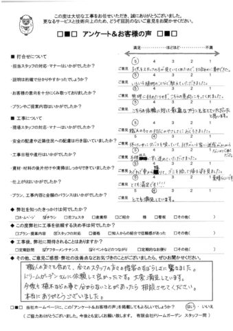 ドリームガーデンさんに依頼して良かったです。大変満足しています。